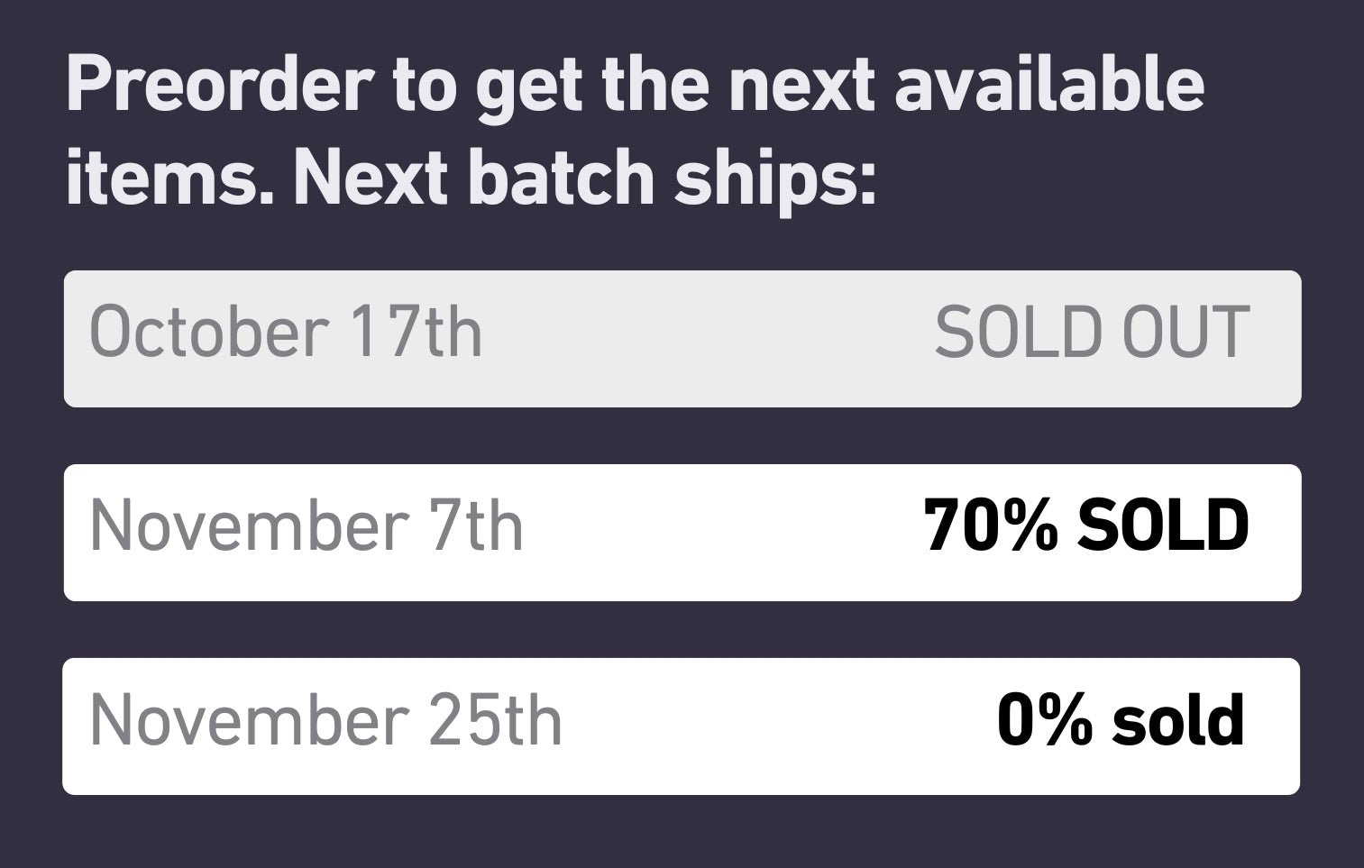 Please note that this is a preorder, the next batch will ship on November 7th.